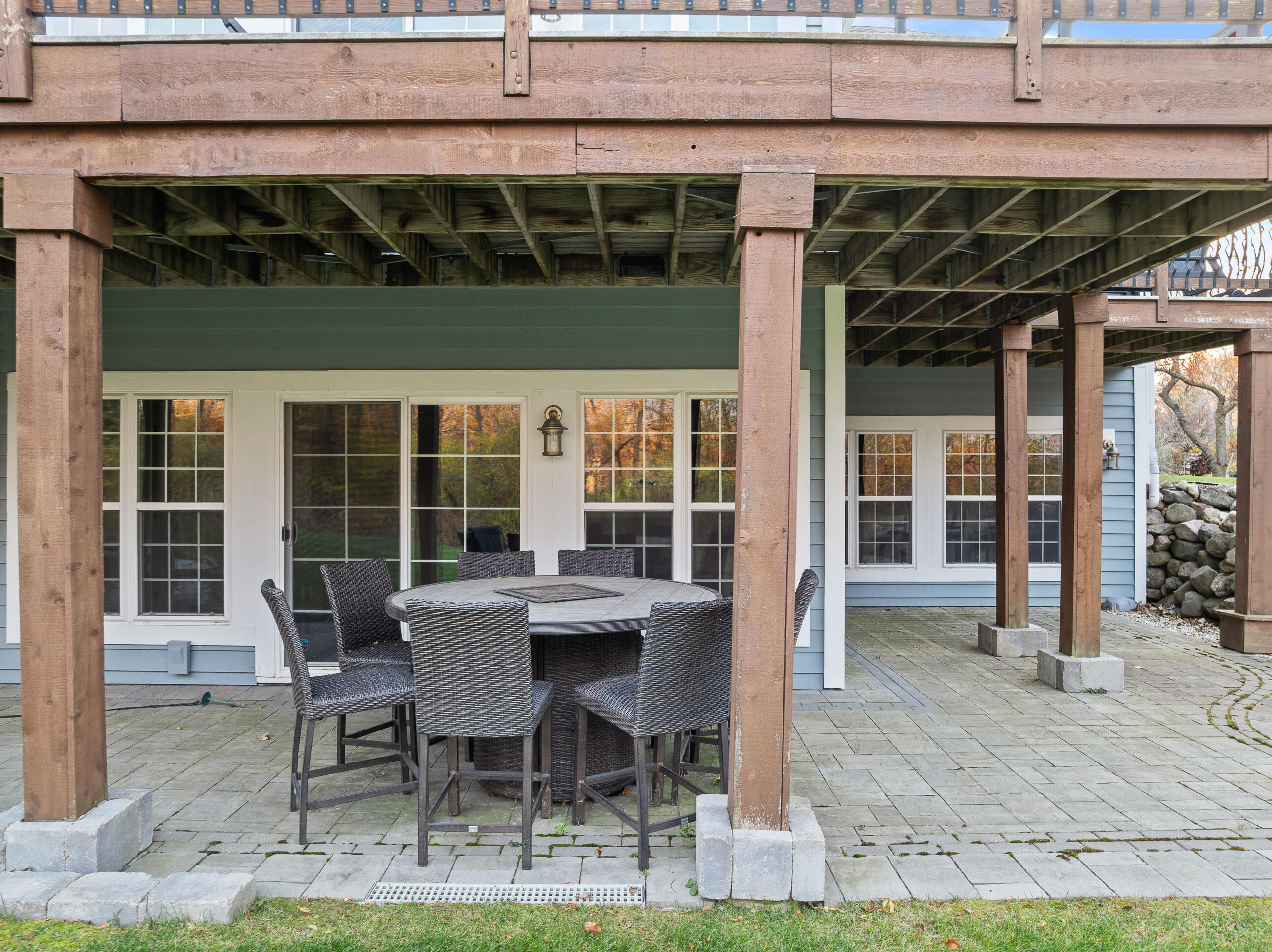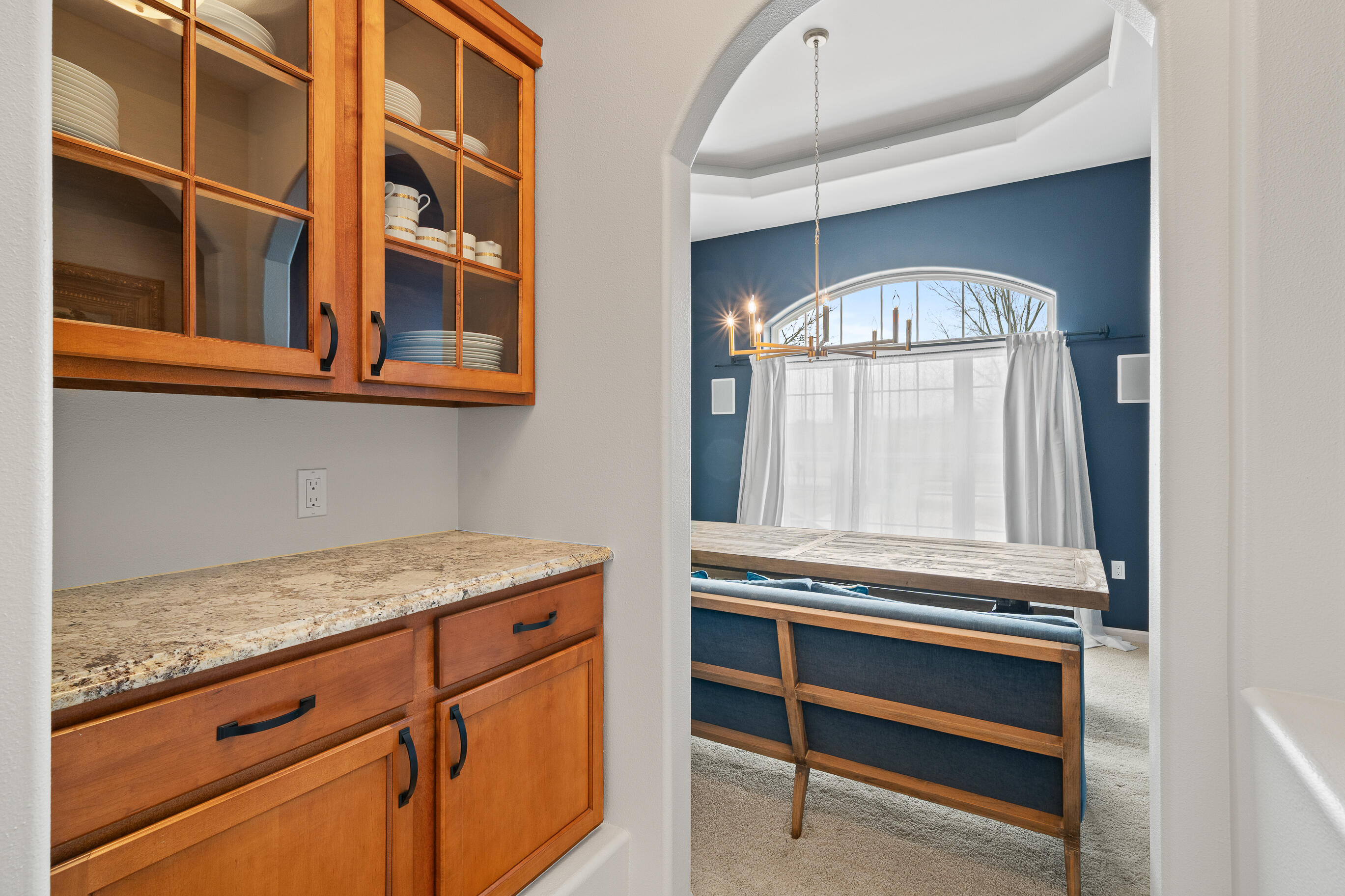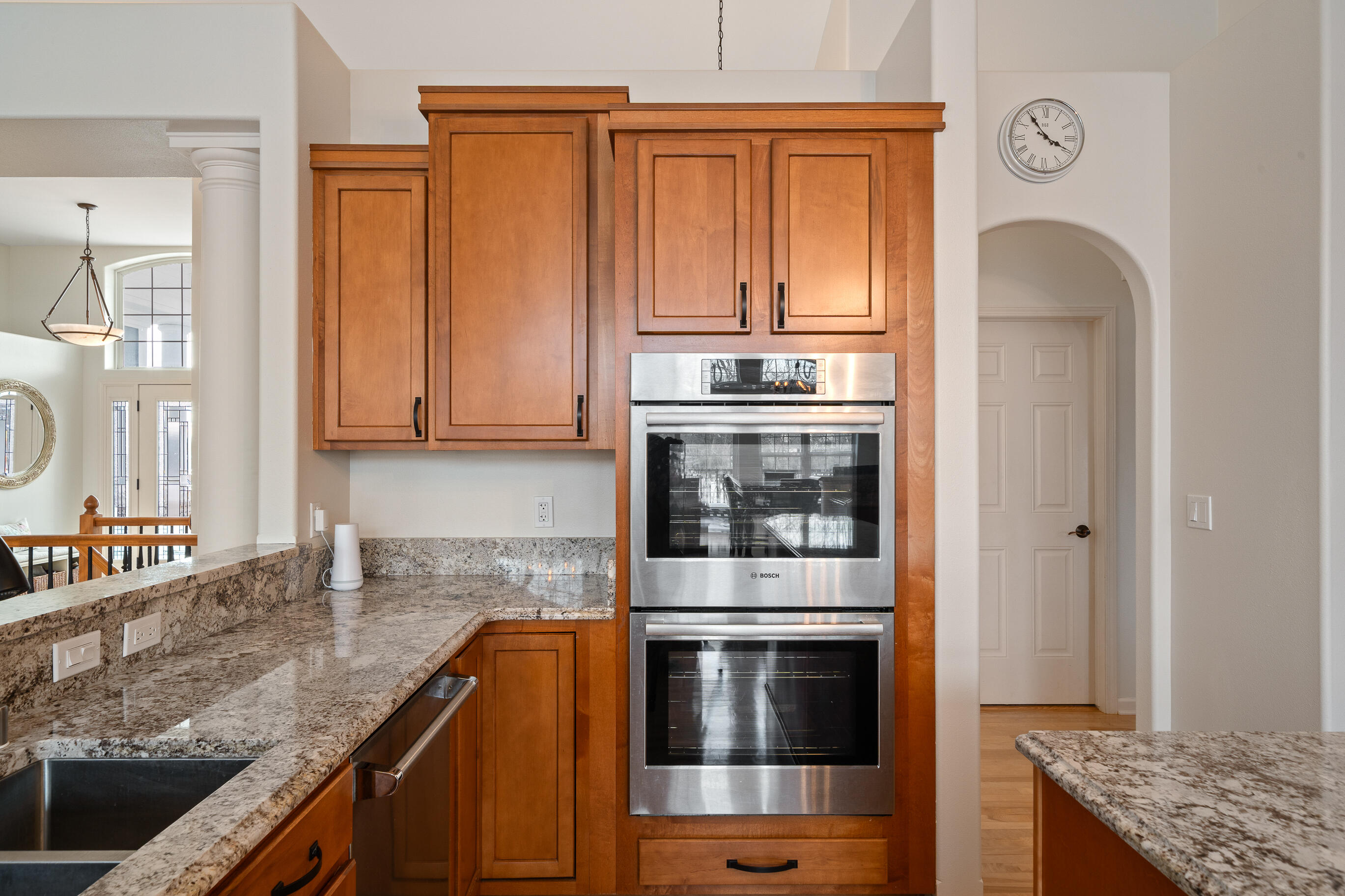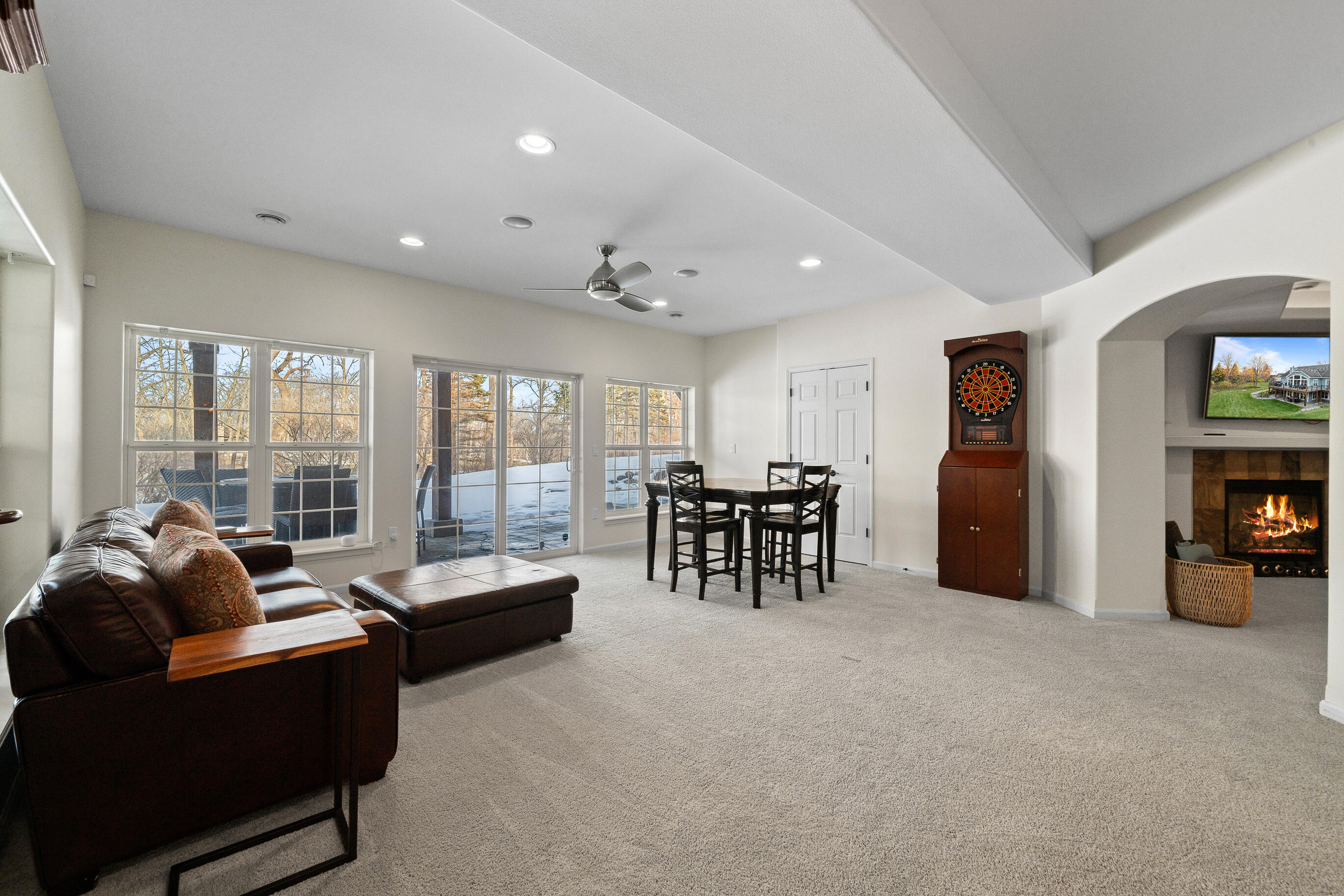 Positioned along the 7th hole of the signature Palmer course, this beautifully crafted raised ranch offers refined living with an open-concept design and soaring ceilings. Featuring 4 bedrooms and 3 baths, the home showcases granite surfaces, rich wood and stone flooring, stainless appliances, a butler's pantry, 2 gas fireplaces, and beautiful spaces for relaxing and entertaining.The primary suite incl. spa-like bath, dual vanities and custom walk-in closet.The lower level presents a theatre room, wine cellar, wet bar, and guest suite. An expansive patio, large deck, spacious yard privacy and views, and an easy walk to pools. Recent updates incl: interior/exterior paint, on demand H20 htr, furnace,whole house humidifier, water softener, air duct cleaning. Swim/racquet, for-fee golf, dining