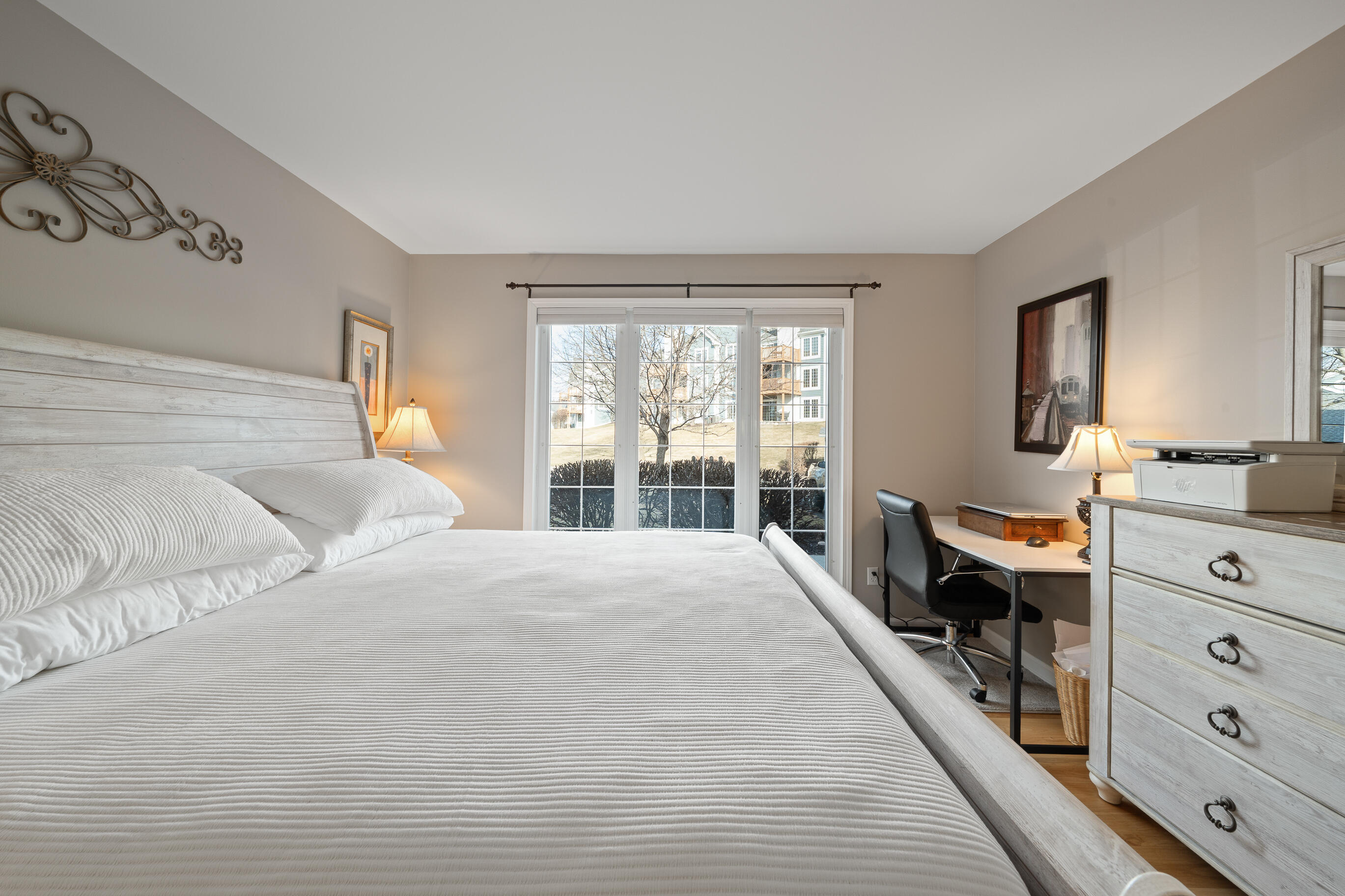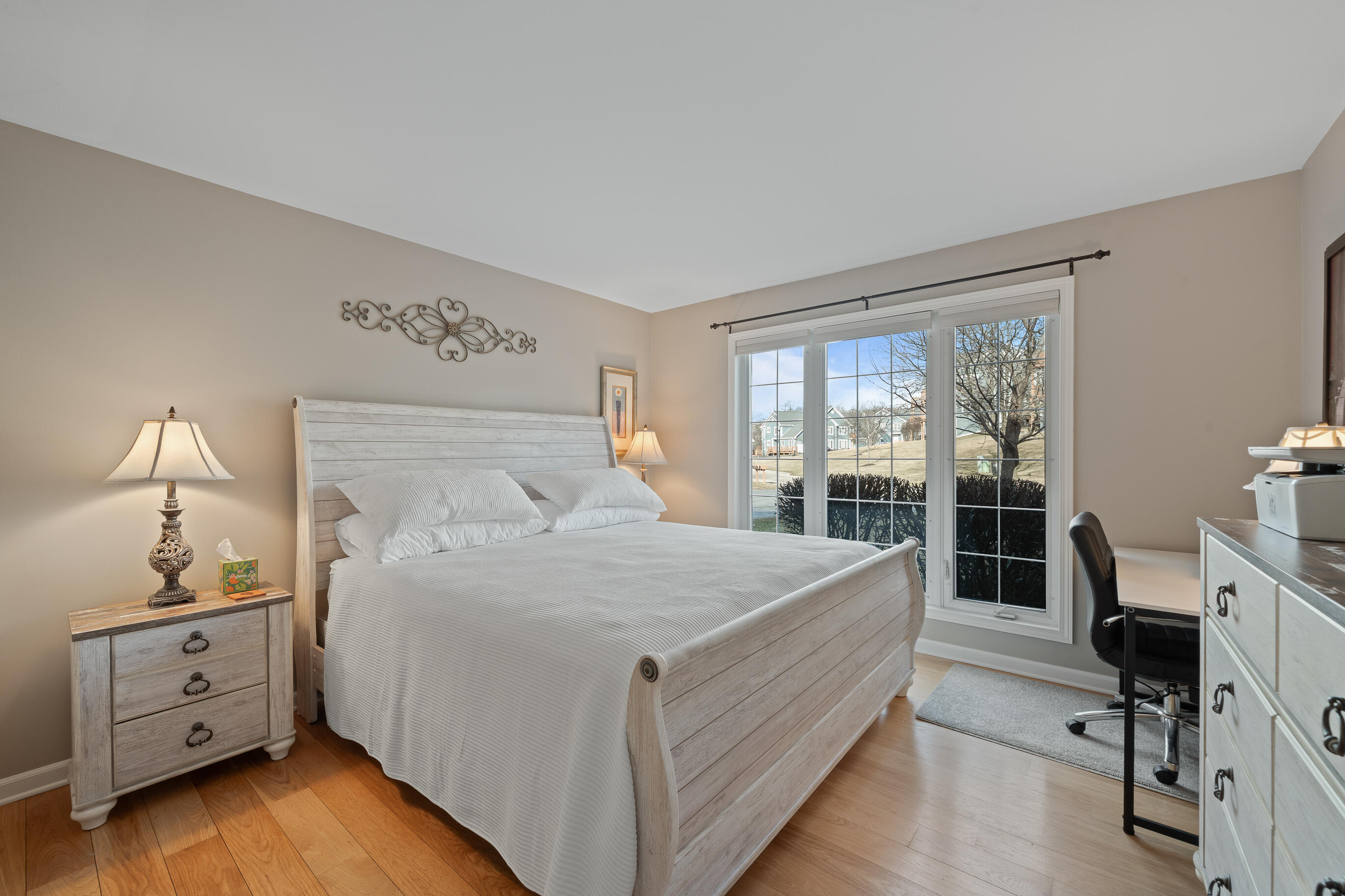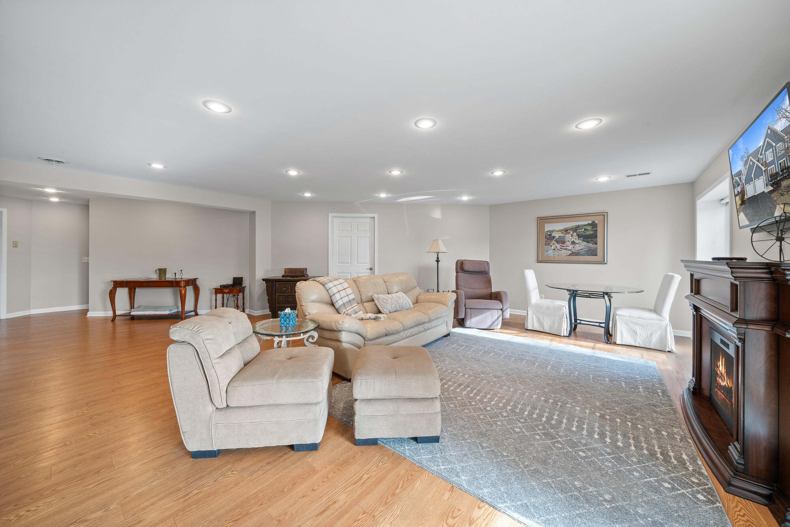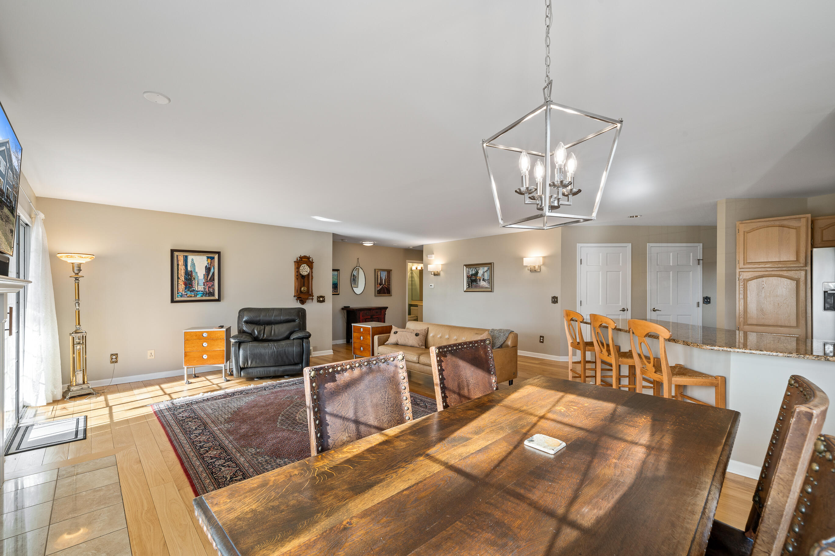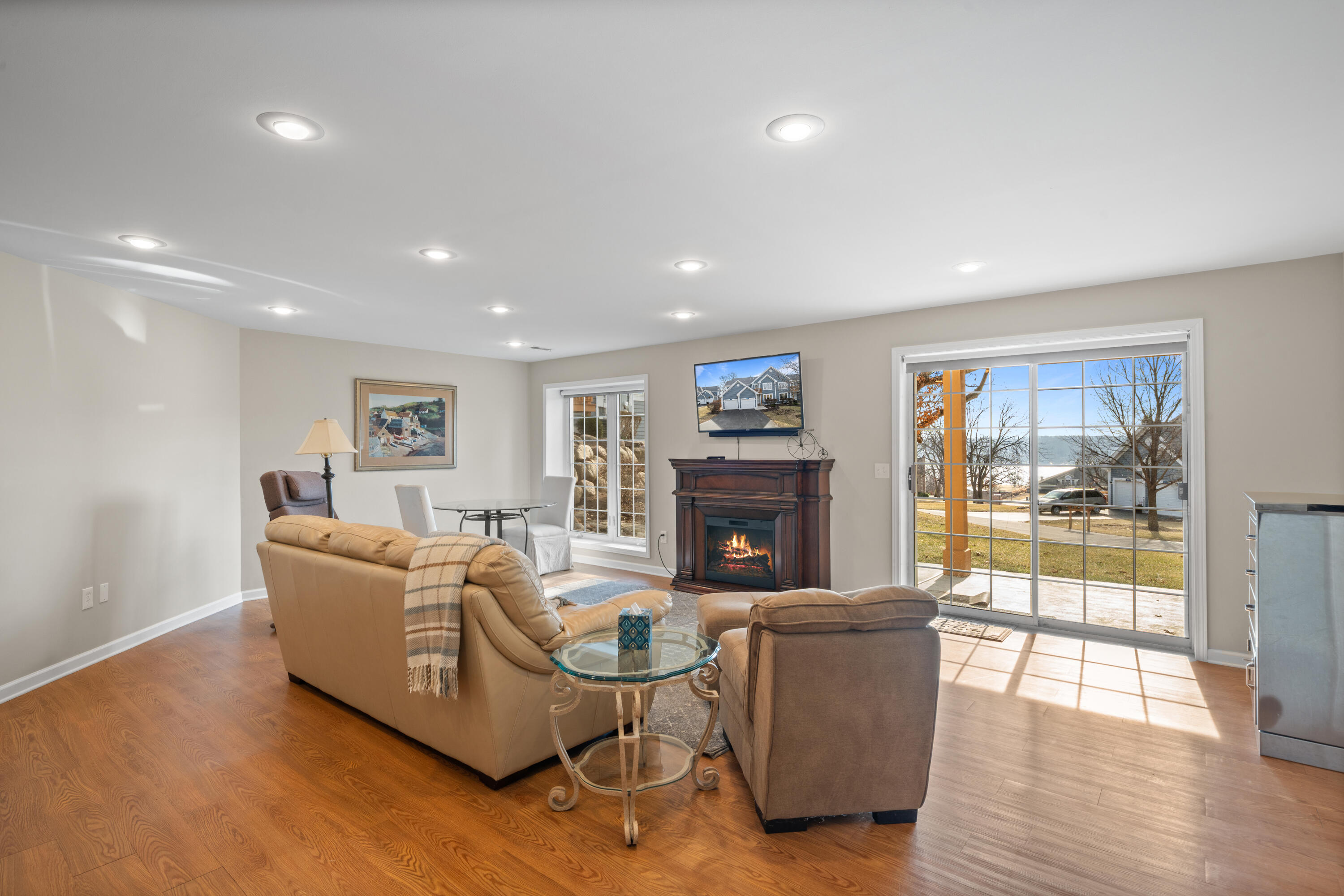 Geneva National corner, end-unit ranch condo with lake views and southern exposure. The residence features an open concept floor-plan with 3-4 bedrooms and 3 baths, including a main floor primary suite. Lovely hardwood floors, newer stainless appliances, new dining, hall, and wall fixtures, deck, gas fireplace and a one car garage make this the perfect primary or secondary residence. Spacious finished lower level offers family room, bath w/shower, 1 bedroom with large windows, a flex room currently used as a bedroom. Enjoy all the amenities of Geneva National Golf Club, including outdoor pools, tennis, pickle ball, hiking trails, restaurants and 2 onsite, for-fee signature golf courses.