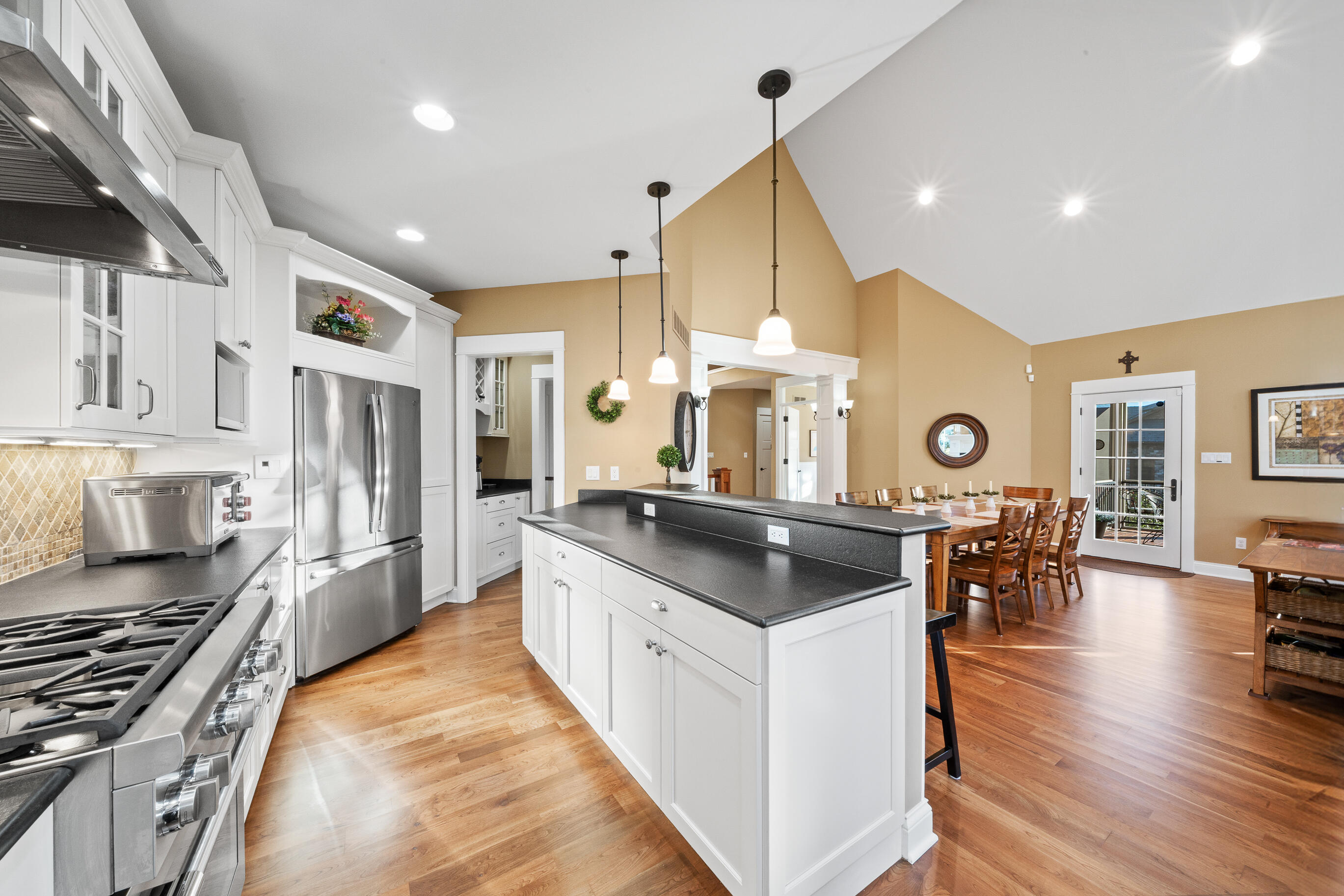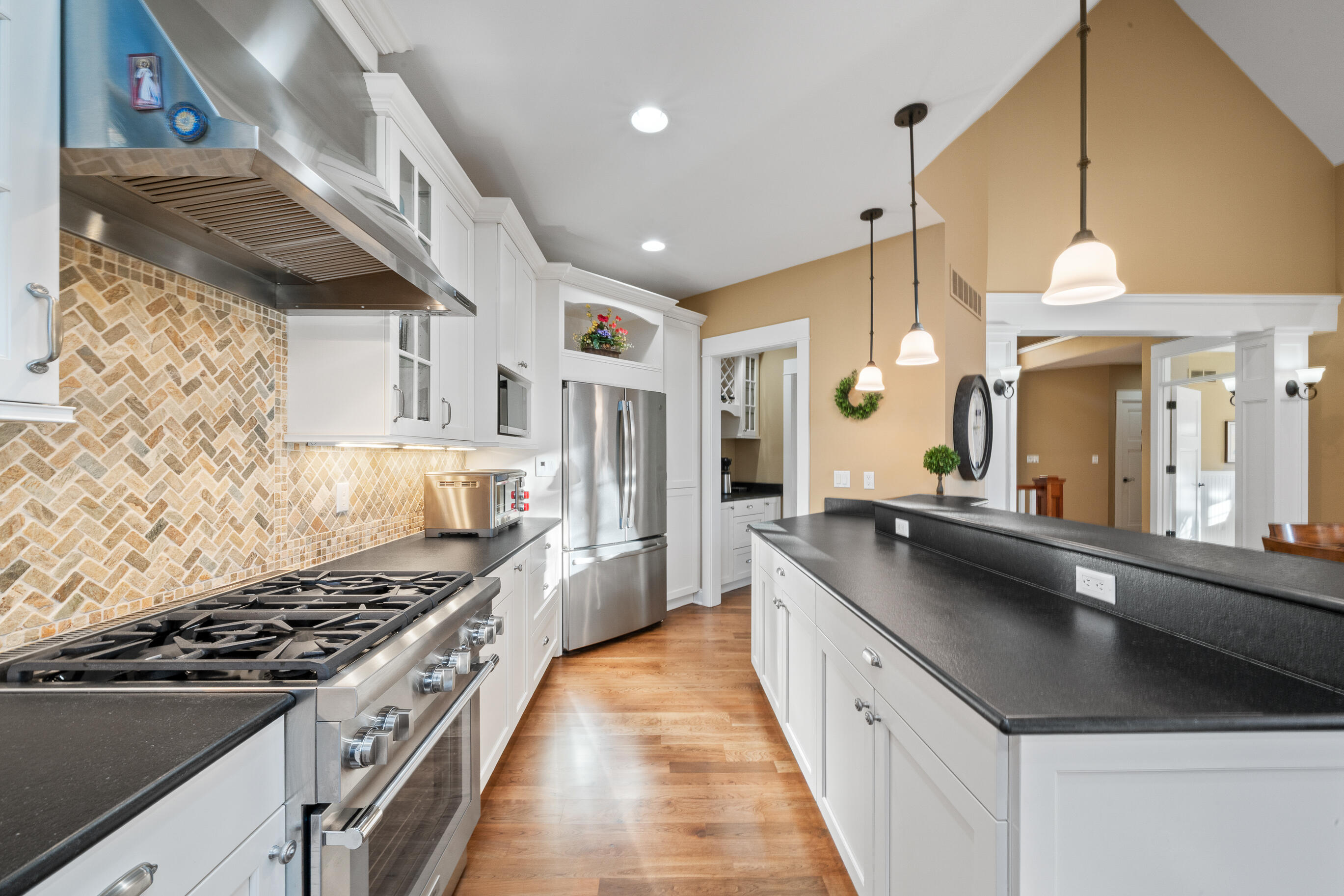 Designed and built by Scott Lowell, this custom ranch home offers 5,750 sq. ft. of curated living space in The Savannah. This impeccably maintained property is the quintessential New England coastal home focused on a spacious, warm and gracious interior and multiple indoor and outdoor living spaces. Ideally suited for entertaining, the home can easily accommodate large gatherings.A light filled, 2 story cupola entrance welcomes guests to the heart of the home where great room, kitchen and dining area blend seamlessly. Steps away a tranquil screened porch provides a seasonal haven for relaxing. A 2019 addition brought a second kitchen, family room w/game area, heath room w/ fireplace, and finished LL w/dorm room, full bath and guest room plus a second, 2 car garage. Beautifully appointed.