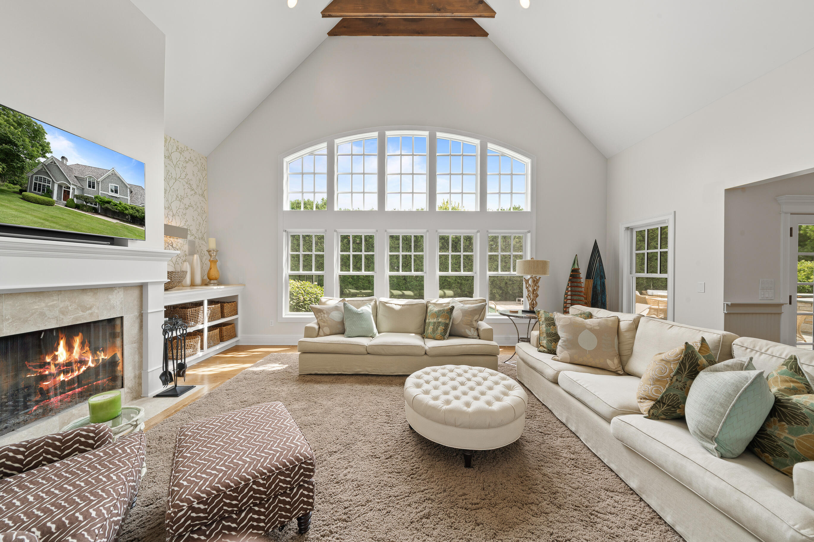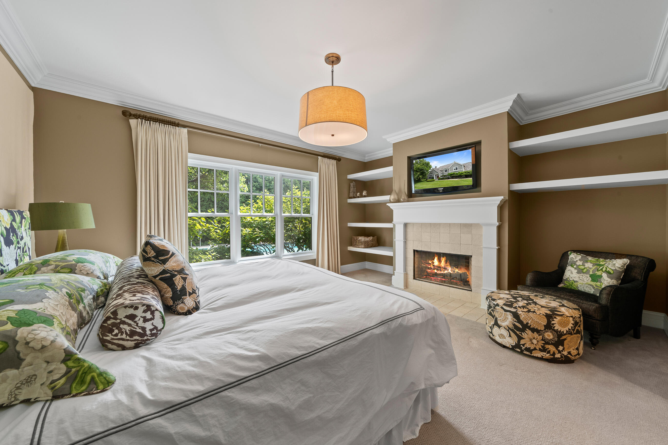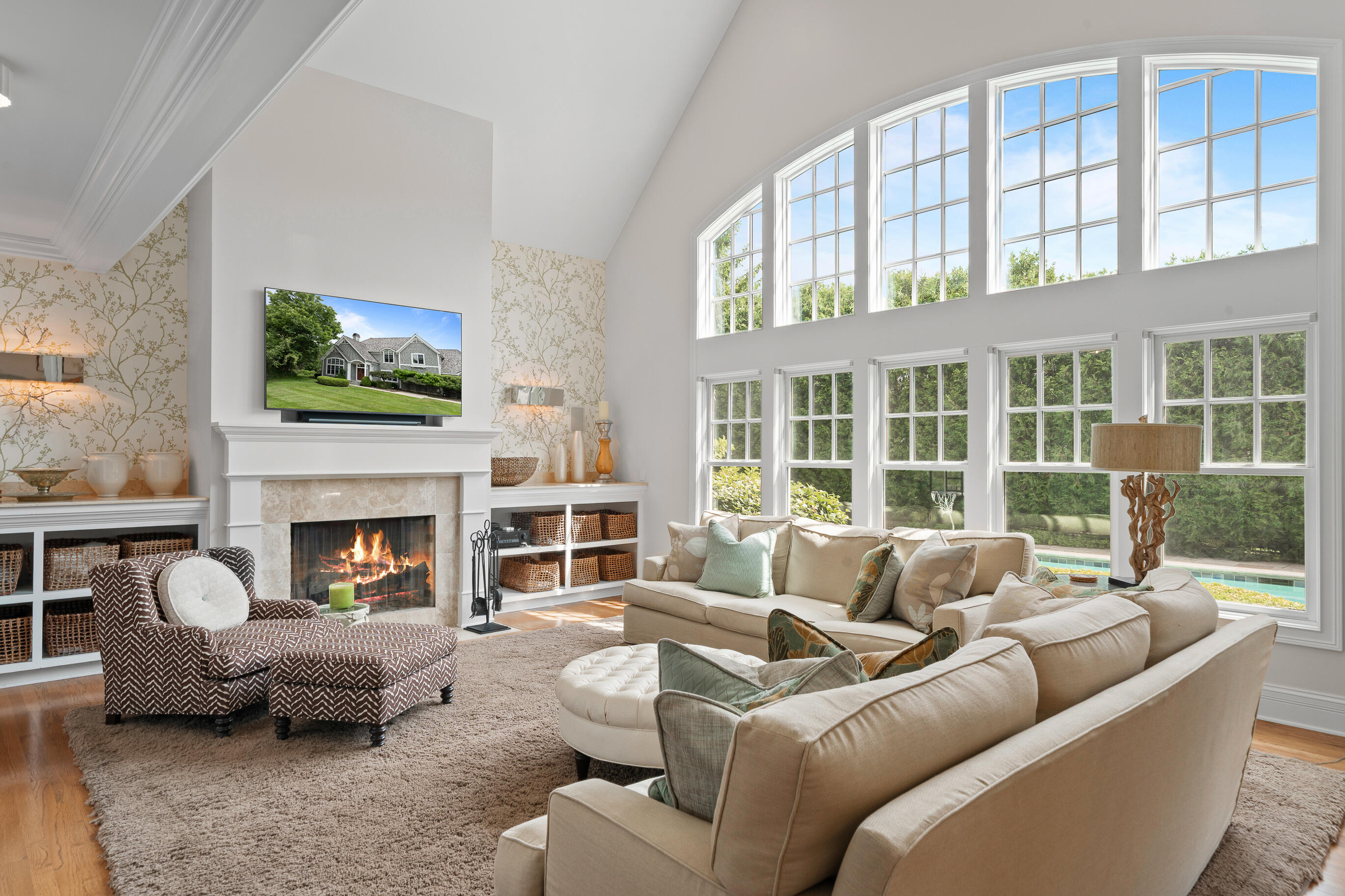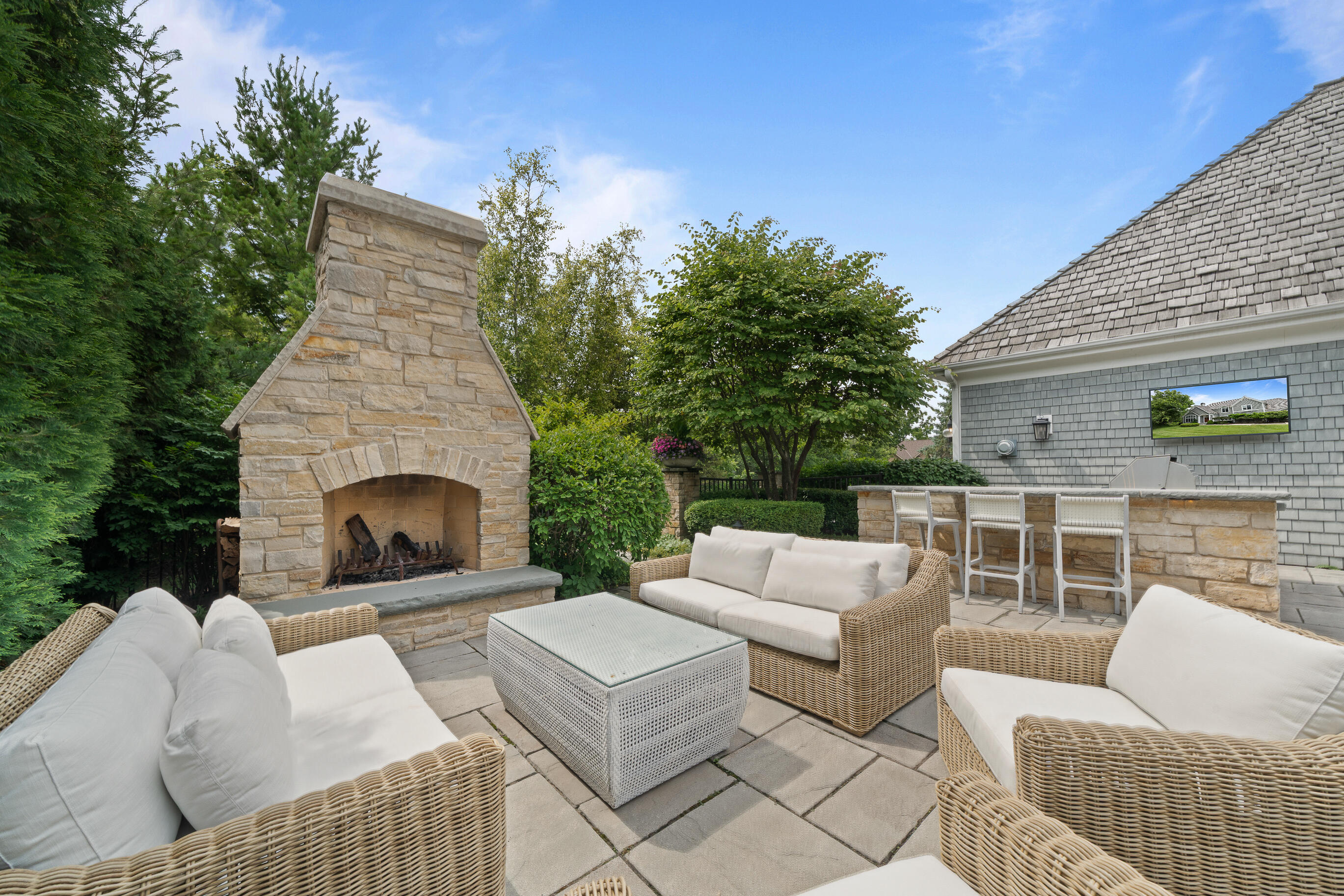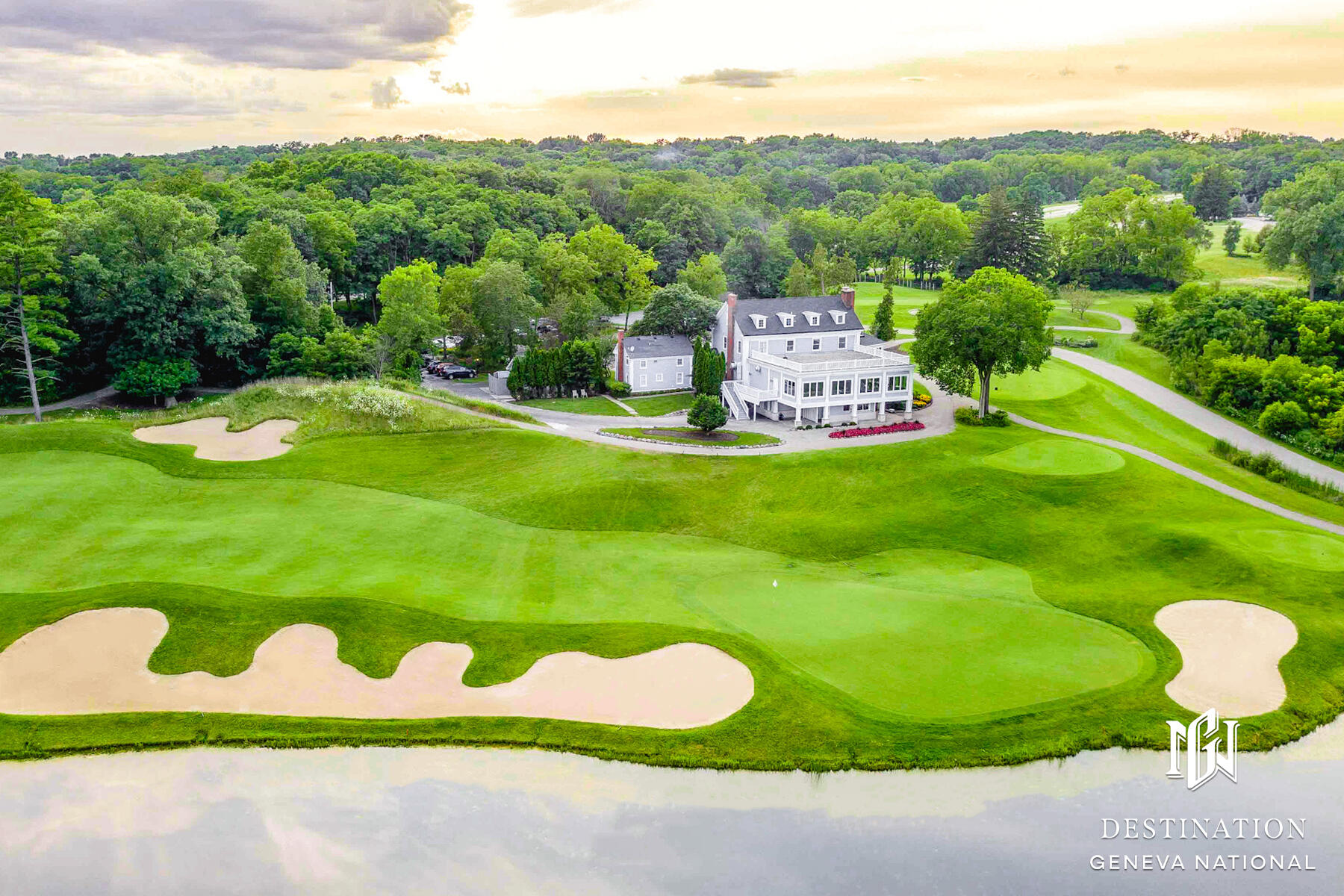 Geneva National is home to this 6-bedroom, 5.5-bath New England-style private retreat. Shielded by lush landscaping, this home is a true escape featuring a heated inground pool with spa, woodburning FP, and outdoor kitchen. Inside, the 2-story great room w/fireplace overlooks the pool, capturing the sense of peace and tranquility.The updated kitchen boasts quartzite counters, upscale appliances and flows seamlessly into a casual dining area that steps out to a covered porch.A family room w/FP, dining room, owner's suite w/FP, guest powder room and laundry complete the main level. Upstairs offers quiet comfort with an en suite bedroom and two additional bedrooms sharing a Jack & Jill bath. Finished LL w/spacious rec room, game/fitness area & en suite guest room. Luxury living at last.