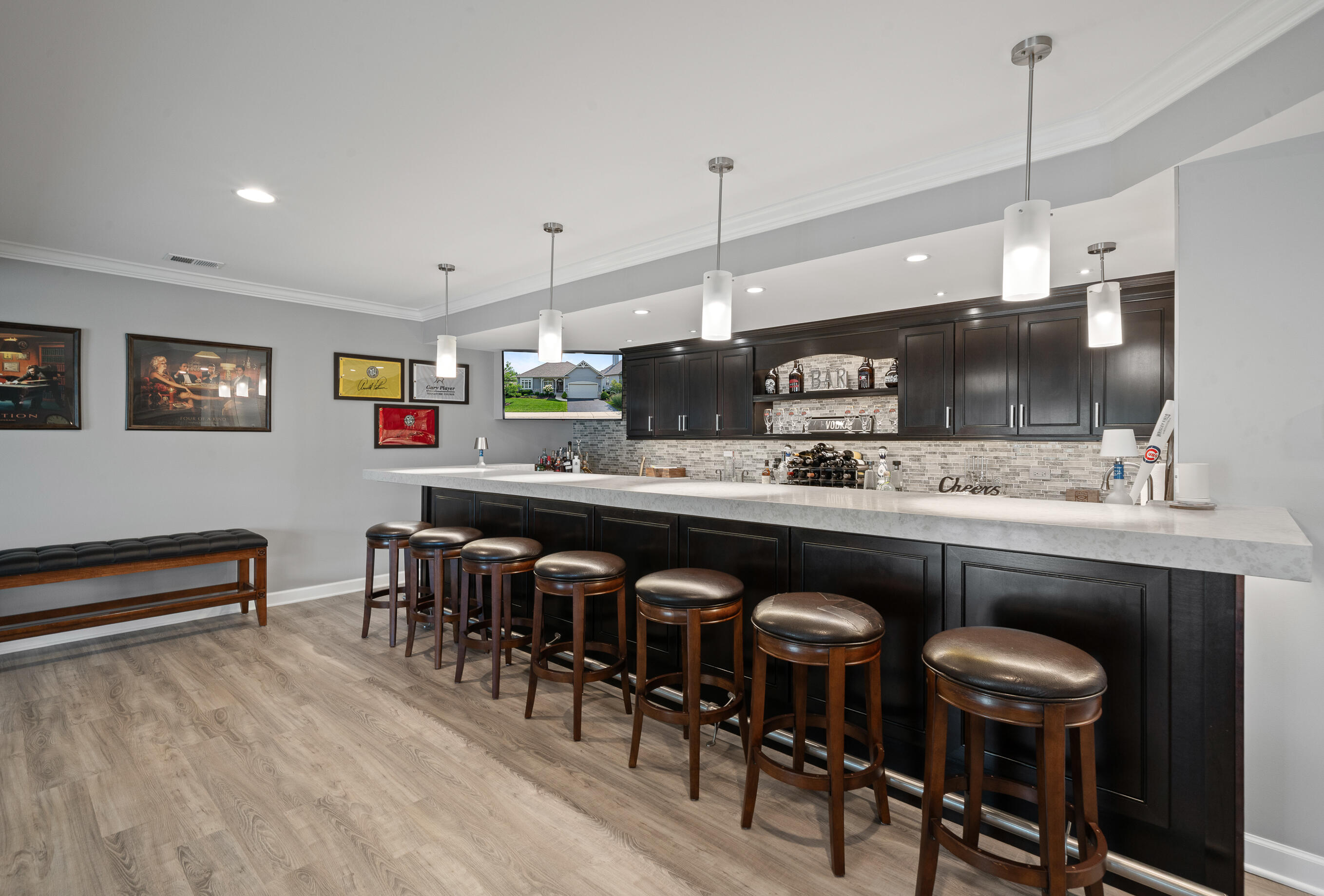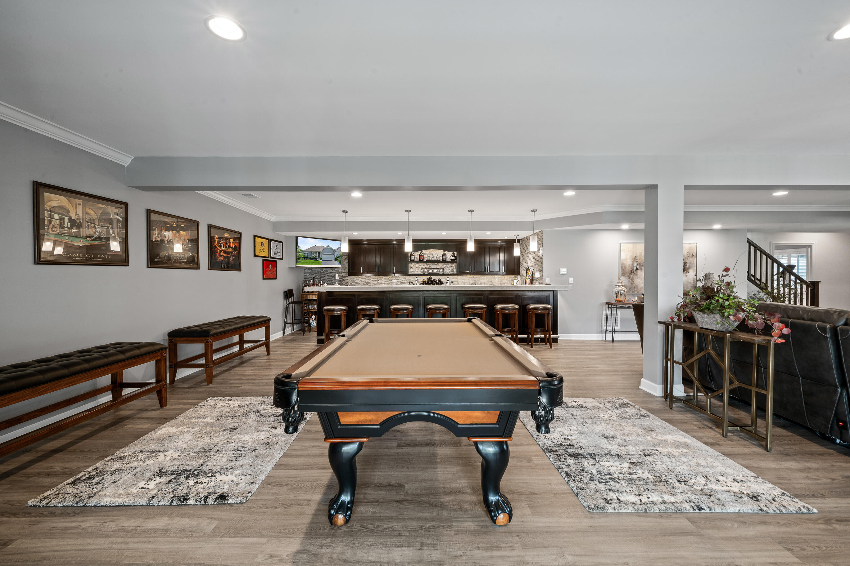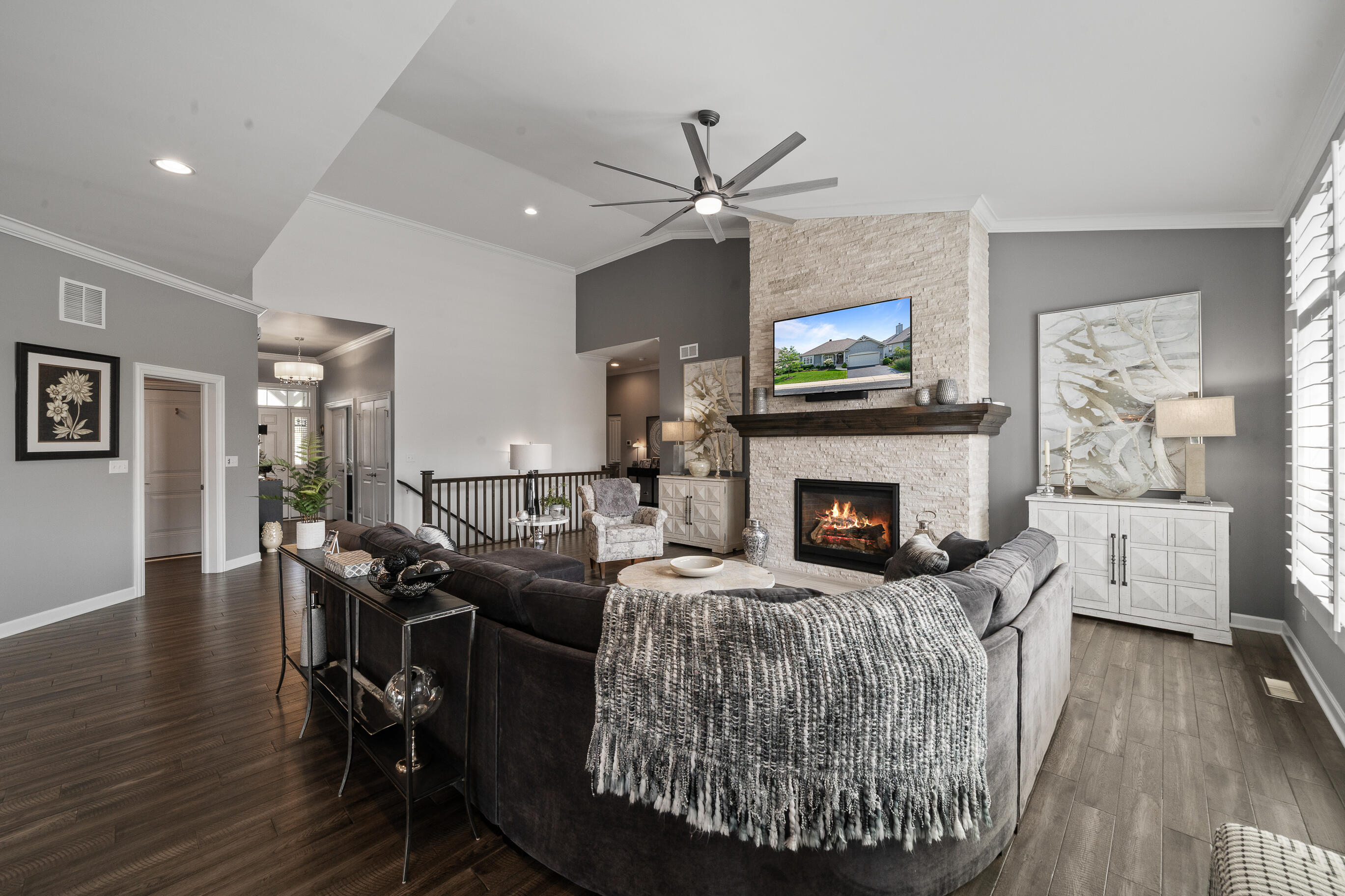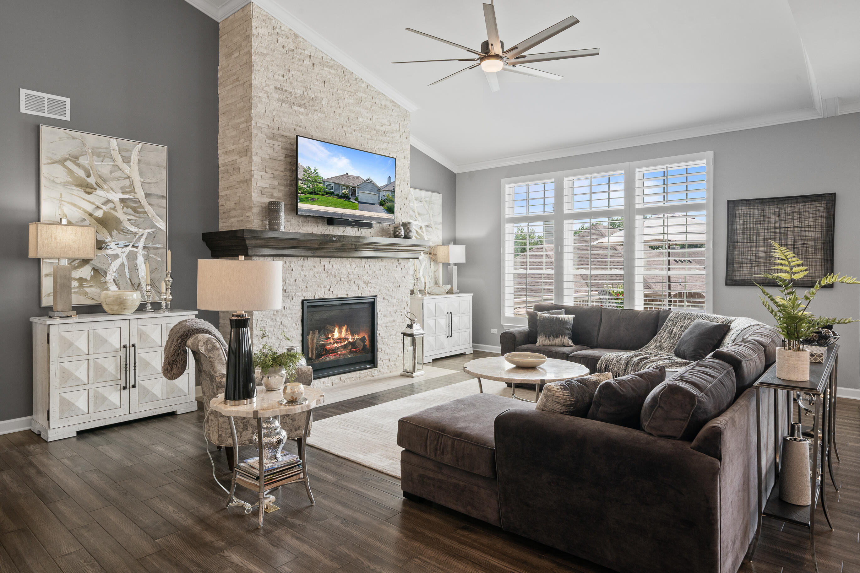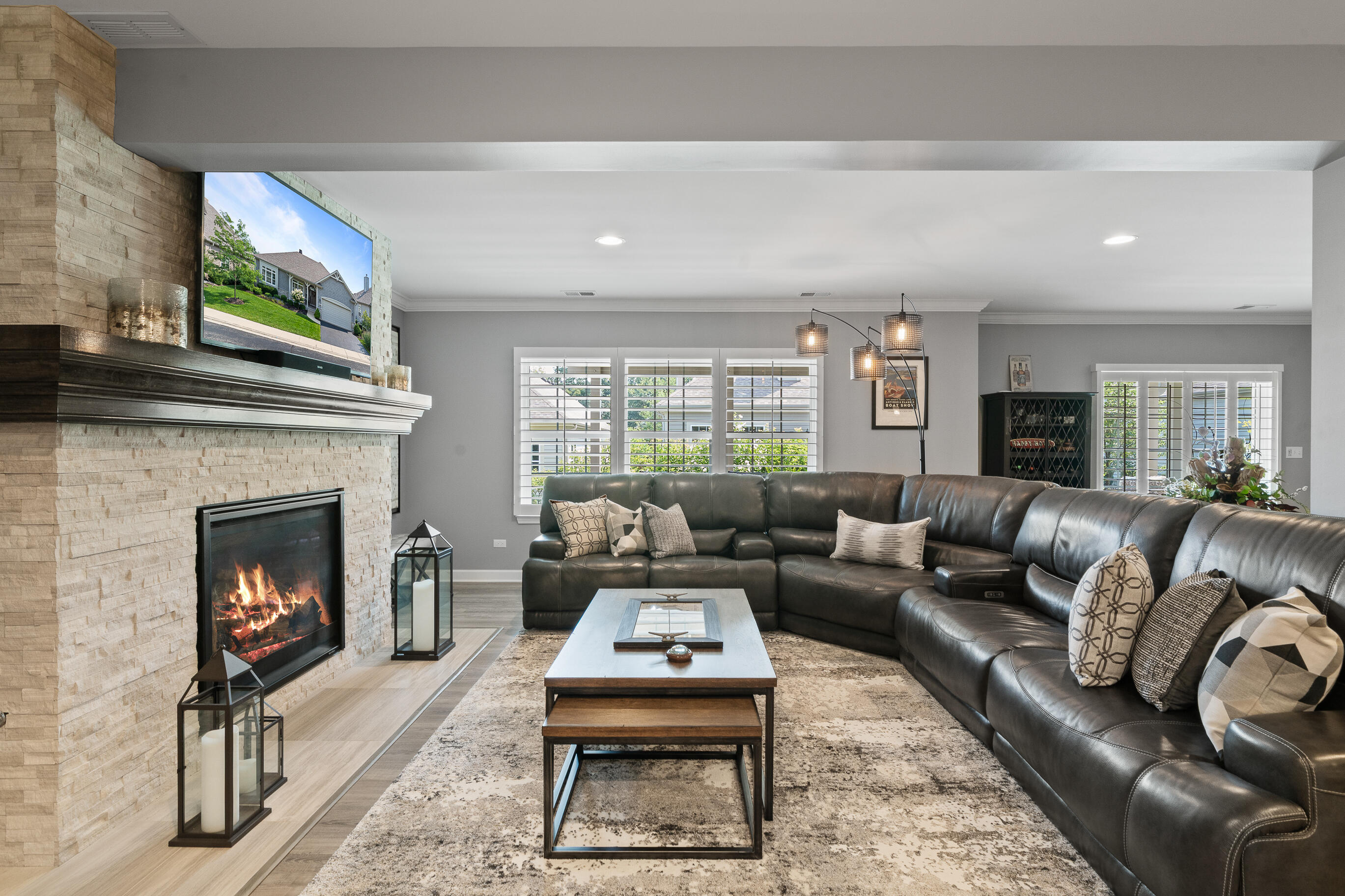 Steps from Geneva Lake, this custom single-family home blends timeless craftsmanship with relaxed sophistication. Sunlight dances across rich wood floors and quartz countertops in a designer kitchen tailored for culinary enthusiasts. The spacious island, built-in dining cabinetry, and inviting great room with a gas fireplace create effortless flow for both gathering and unwinding. The main level showcases a serene primary suite, guest bedroom, and full bath, plus a stunning three-season porch with custom vinyl windows, weatherproof tile, and deck for year-round enjoyment. A beautifully finished, walkout lower level offers two bedrooms, a full tile bath, and a spectacular 14-foot quartzite barperfect for entertaining. Every detail reflects thoughtful design and impeccable care